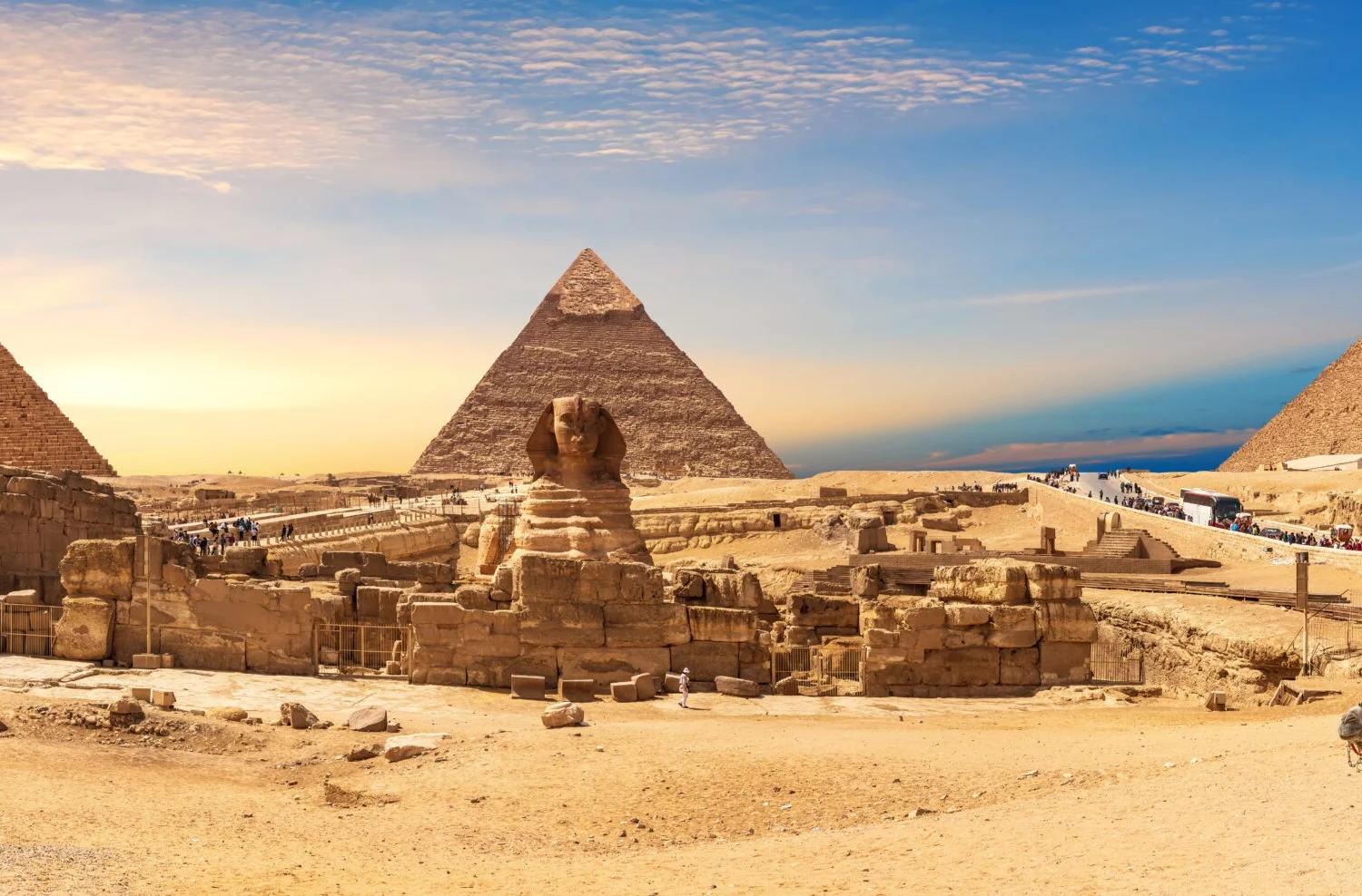 Primera parte de la mañana, desayuno y nuestras visitas comienzan con la visita de las PIRÁMIDES DE LA MESETA DE GUIZA: KHUFU, KHAFRE y MENKAURE, las únicas maravillas de la Antigüedad que aún quedan en pie. Las pirámides de Giza ocupan un lugar destacado en la lista de las mayores atracciones turísticas del planeta.