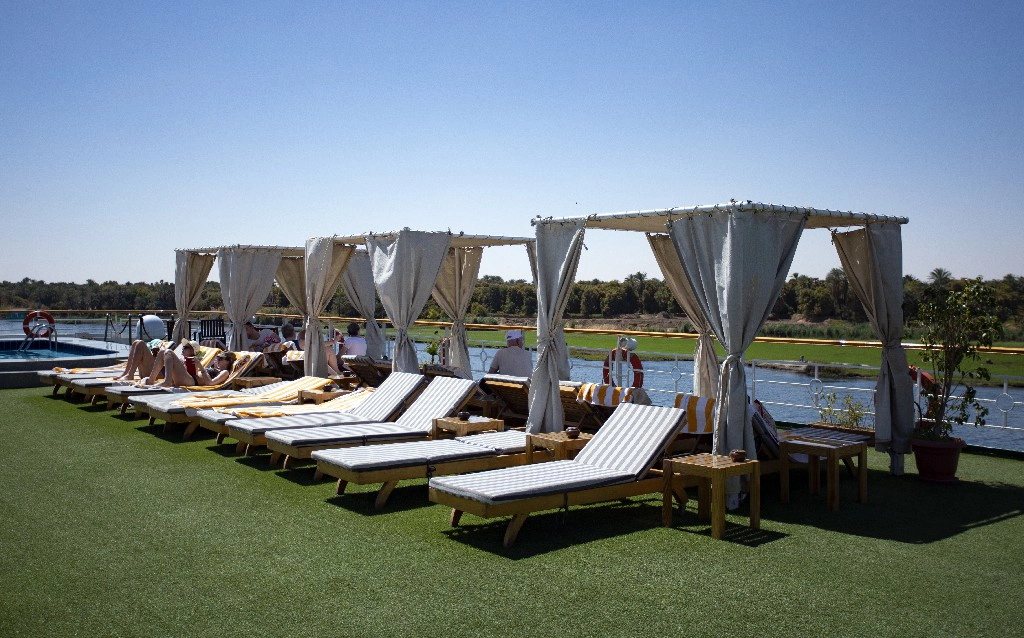 Disfruta del barco y relájate mientras navegas hacia Kom Ombo.