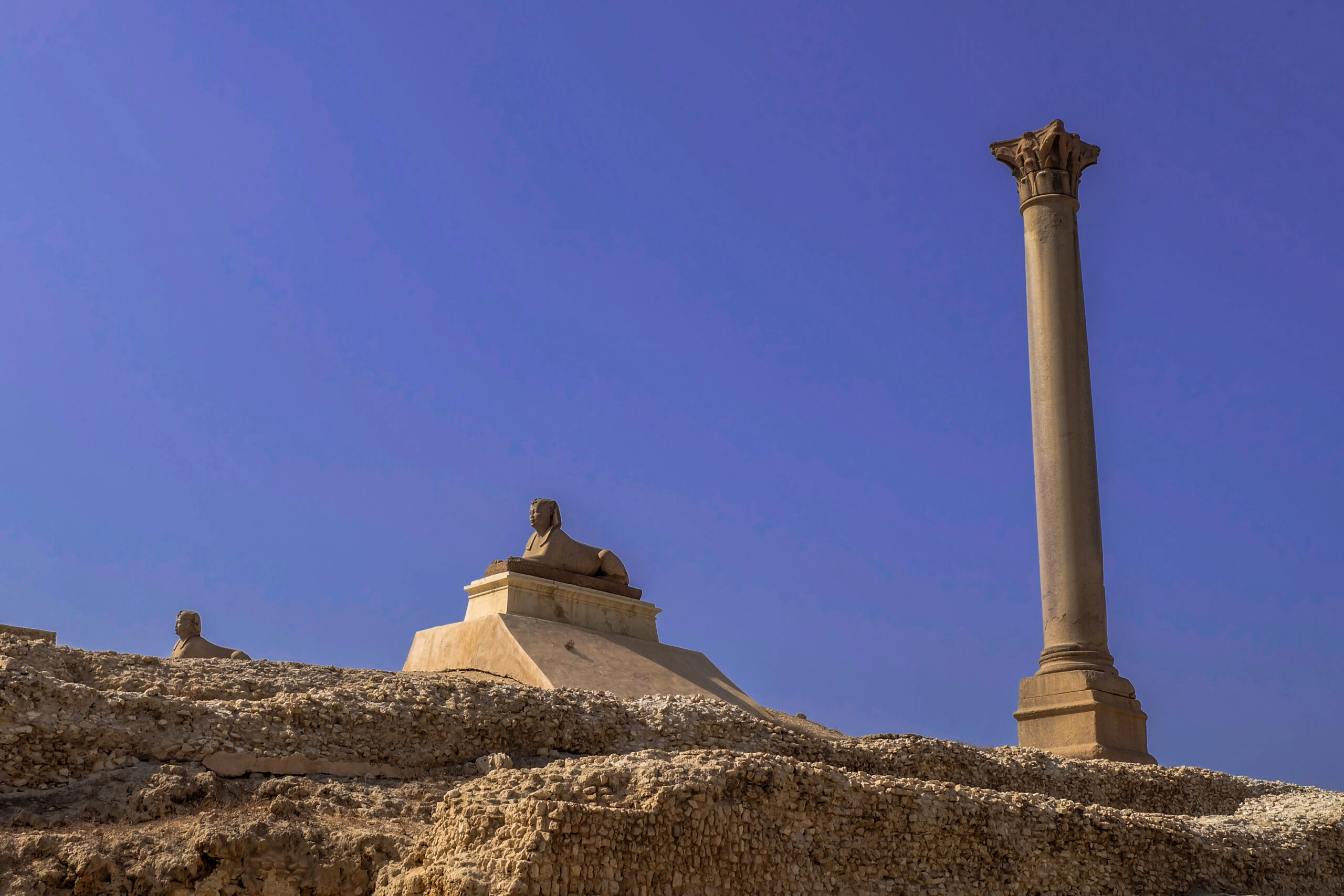 Después, visite la COLUMNA DE POMPEO, es uno de los lugares turísticos más destacados de la ciudad de Alejandría, que consiste en una gran columna de granito que data de la época romana. Esta columna forma parte de las ruinas de un enorme complejo romano que se encontraba en Alejandría hace cientos de años.