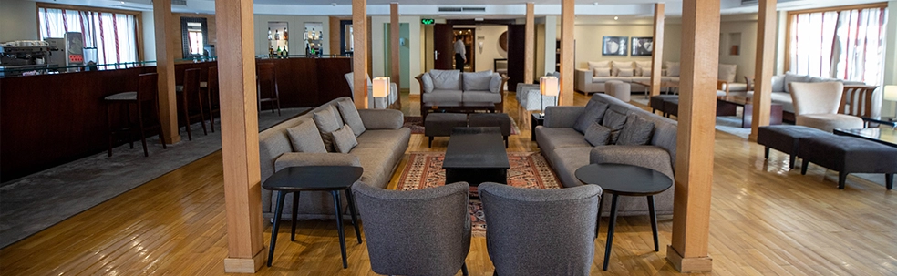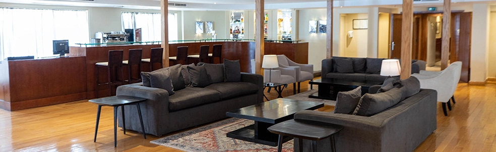 • . Área de recepción y bar lounge con vista panorámica