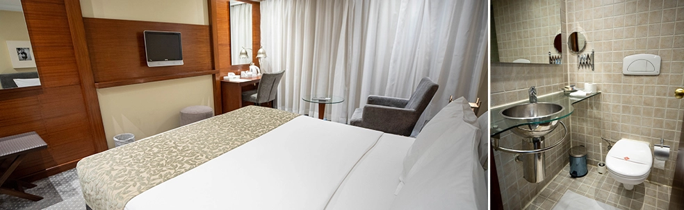 • Mini refrigerador y tetera disponibles en todos los camarotes