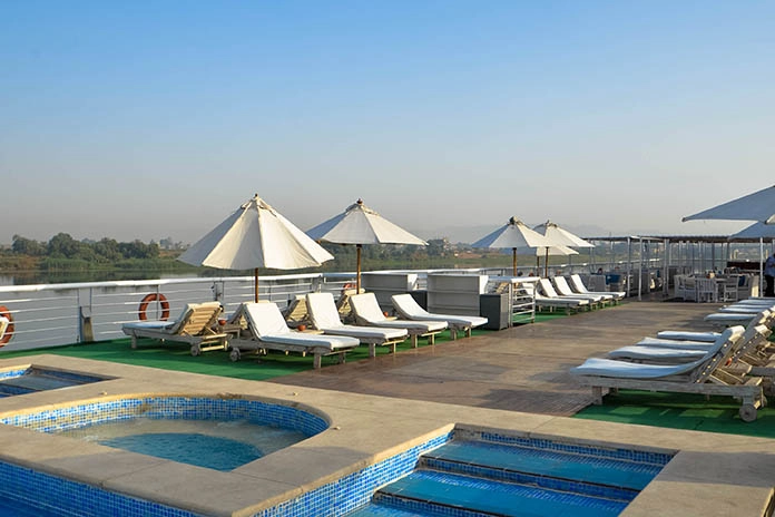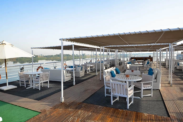 Disfrute de los cruceros por el Nilo en Egipto Tours entre Luxor, Esna, Edfu, Kom Ombo y Asuán. Disfrute de un lujoso viaje a bordo mientras explora la civilización egipcia. Experimente una forma fascinante de viajar y relajarse en los barcos de cruceros por el Nilo en Luxor. Disfrute de un crucero especial por el Nilo Nuestros cruceros por el Nilo ofrecen una excelente comodidad y un servicio excepcional para descubrir Egipto. El crucero por el Nilo es uno de los recorridos de vacaciones más fascinantes en Egipto con nuestros barcos de crucero por el Nilo. Tiene la oportunidad de visitar lugares históricos antiguos para enriquecer sus vacaciones en Egipto con un crucero de lujo por el Nilo que incluye visitas turísticas privadas y servicios exclusivos. El crucero por el Nilo Sabena Al Jamila es un crucero de lujo de 5 estrellas por el río Nilo que consta de 4 suites y 66 camarotes dobles distribuidos en la cubierta principal, dos cubiertas superiores y una cubierta inferior. El tamaño de cada camarote es de 22 metros cuadrados cada uno, con baño / ducha privados y el tamaño de cada suite es de 35 metros cuadrados cada uno, con baño / ducha privados. El crucero por el Nilo Al Jamila se lanzó en 2002 y fue totalmente renovado en el verano de 2010.