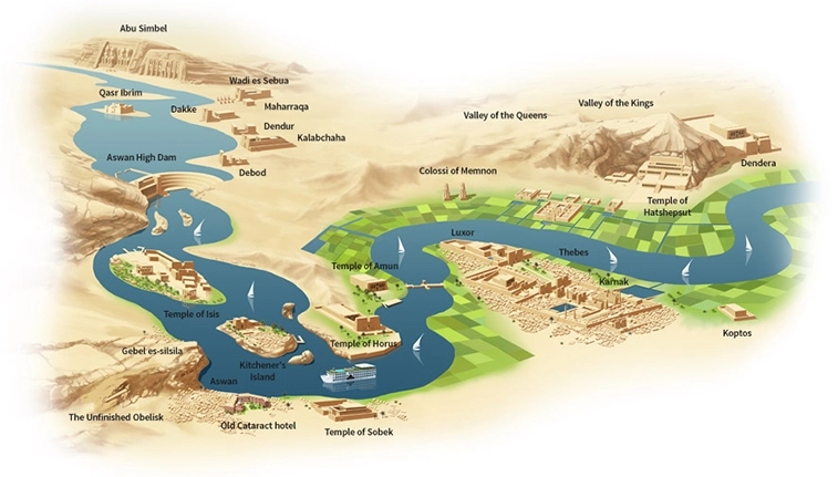 Navegue a Esna y luego a Luxor.Relájese y disfrute del paisaje en ambas orillas del Nilo. Durante la noche a bordo.Comidas: (B/L/D)